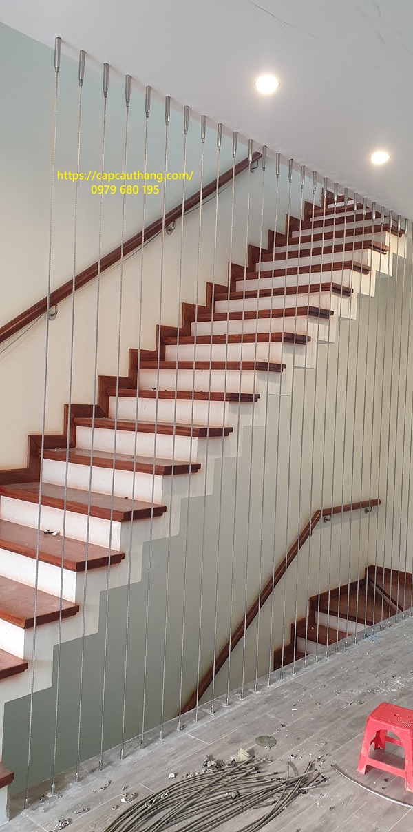- Số đoạn dây cáp = số bậc cầu thang tầng 1 x 2 (Cộng thêm 10-15% chiều dài dự phòng)
