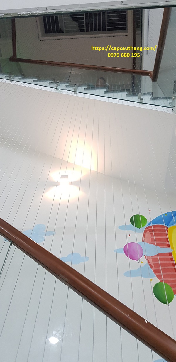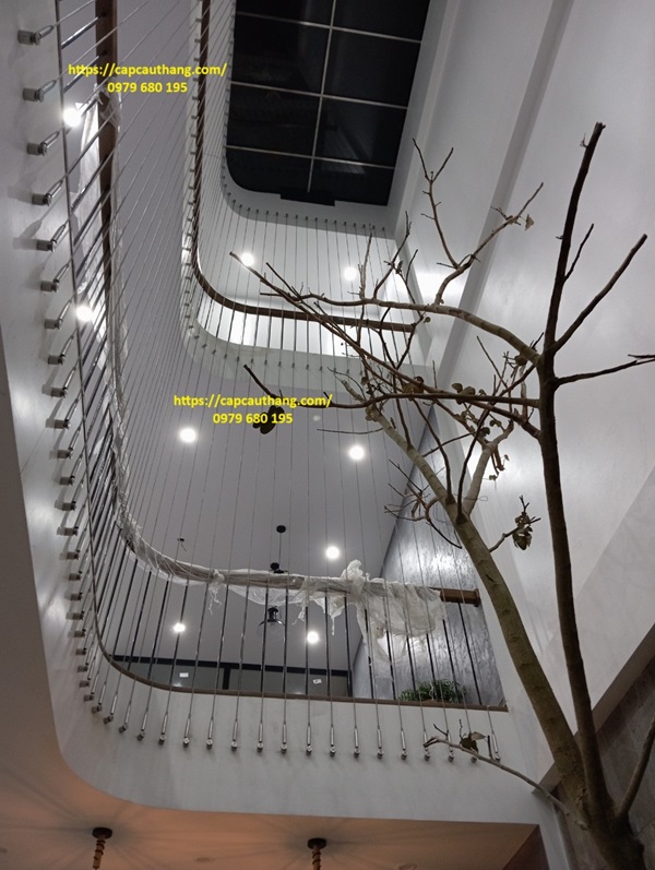Thiết kế giếng trời trên cầu  thang là xu hướng được thiết kế cho nhiều căn nhà ống, nhà phố có diện tích nhỏ hẹp hiện nay. Nó giúp mở rộng không gian, đón gió, lưu thông không khí, đón khí trời tự nhiên tràn vào ngôi nhà. Với nhiều gia đình có con nhỏ, để bảo vệ an toàn cho các bé khi vui chơi, di chuyển lên xuống cầu thang thì giải pháp tối ưu nhất là lắp đặt cáp an toàn cho giếng trời.