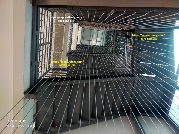 Hình ảnh thi công lắp đặt Dây cáp an toàn cầu thang giếng trời