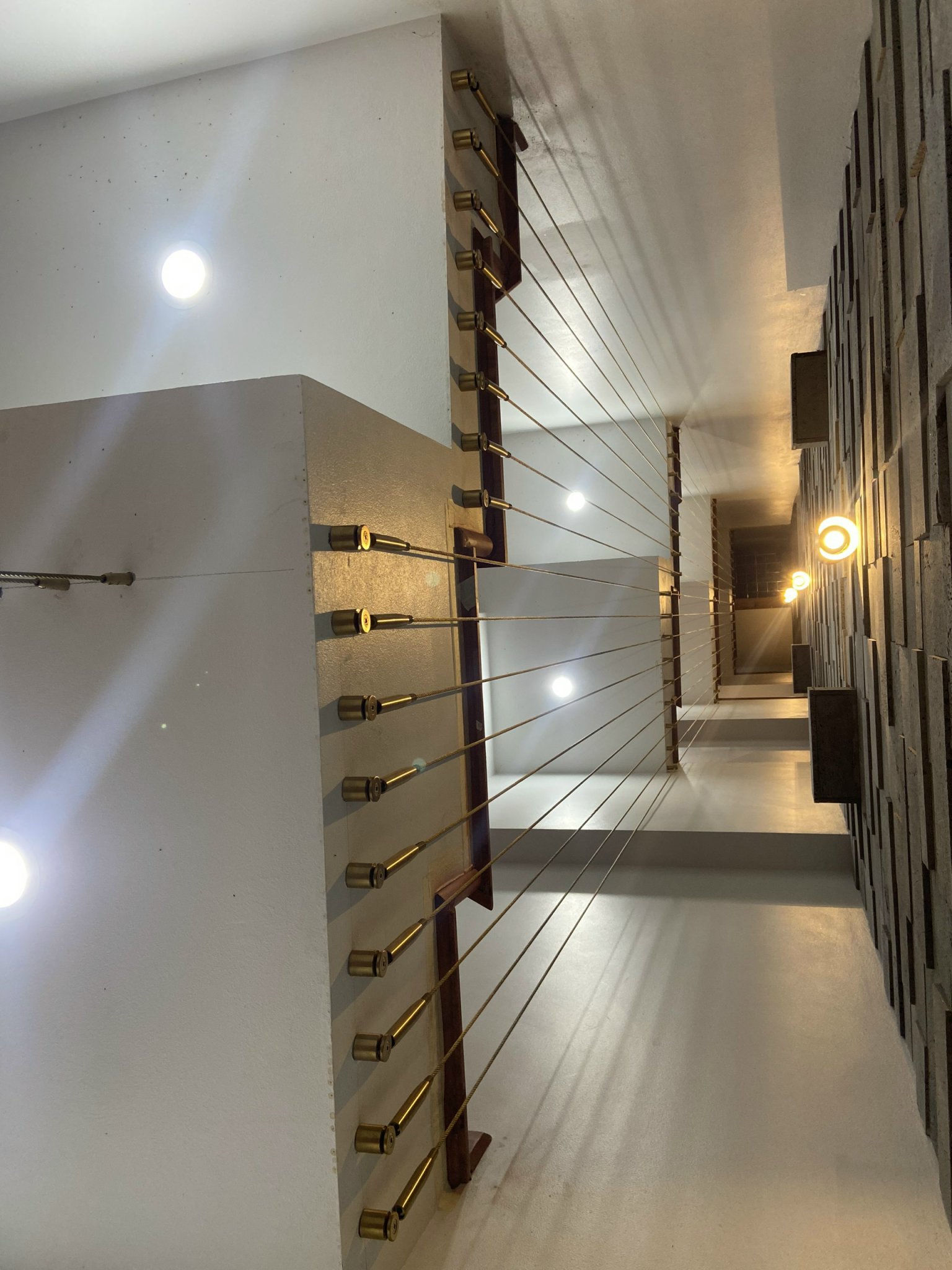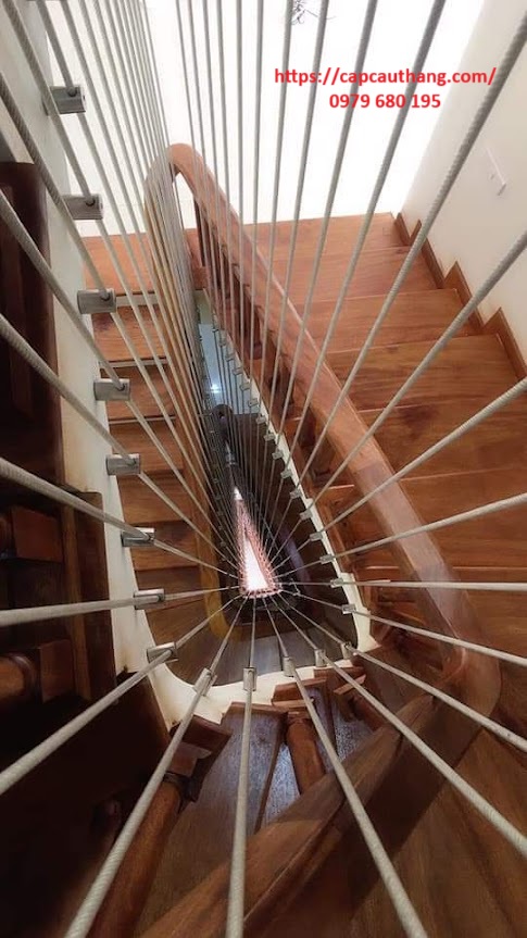 • Dây cáp cầu thang: cáp có độ dày 6mm hoặc 8mm được lắp với khoảng cách đều nhau 8-10cm/sợi.