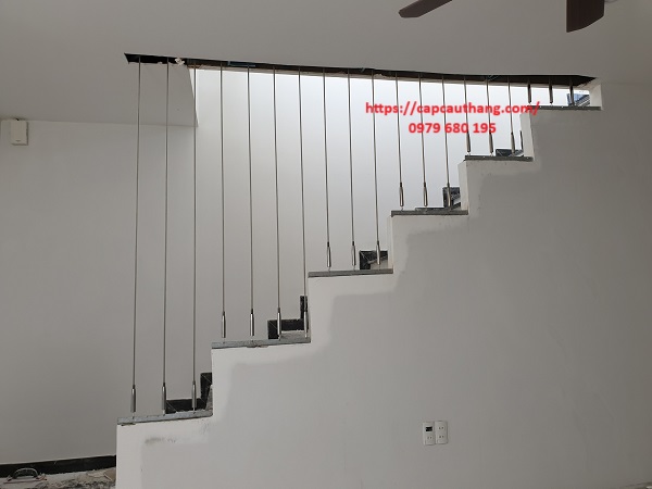 - Giữ cáp: được dùng bằng sắt hộp V4 hoặc V5. Trường hợp không dùng giữ cáp thì có thể dùng tăng đơ mặt bậc để lắp trực tiếp lên trần nhà.