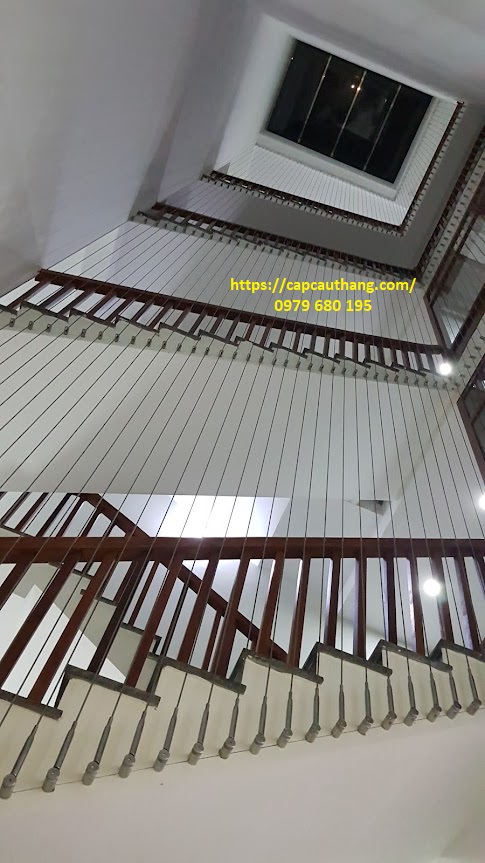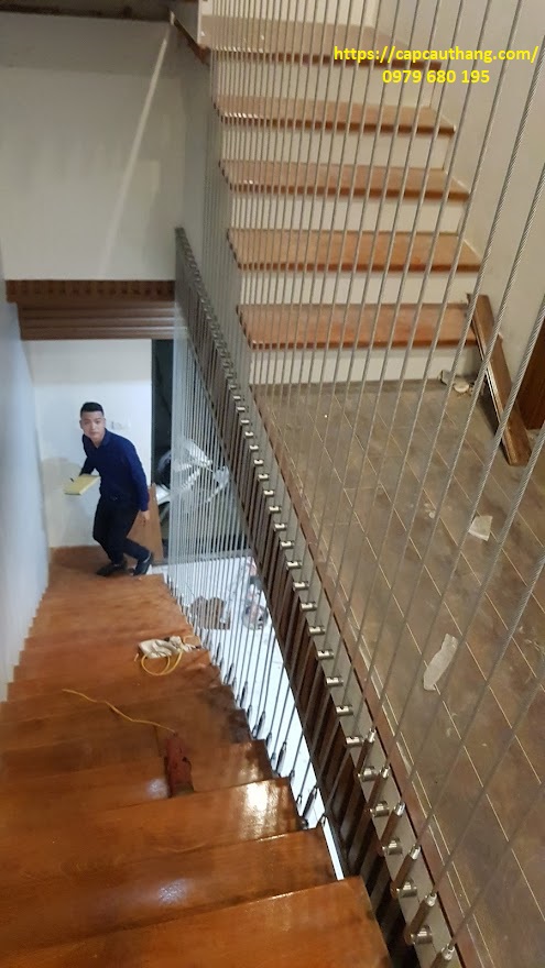 Lắp đặt lan can dây cáp bảo vệ an toàn cho cầu thang