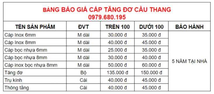 Báo giá thi công cáp cầu thang tại Gia Lâm – Hà Nội