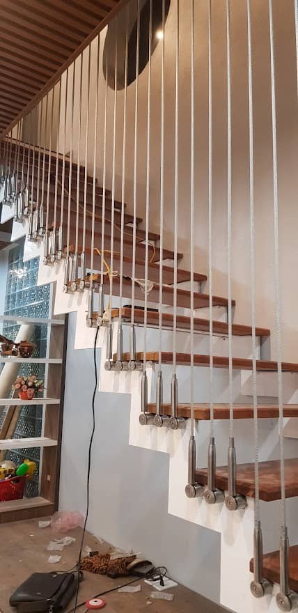 Cáp cầu thang tạo cảm giác không gian mở và tăng cường tầm nhìn. Bằng cách sử dụng dây cáp thay vì các vật liệu khác như gỗ hay kính, nó không che chắn tầm nhìn và cho phép ánh sáng tự nhiên đi qua, làm sáng tỏ không gian và tạo cảm giác thoáng đãng hơn. - Dễ lắp đặt và bảo trì:
