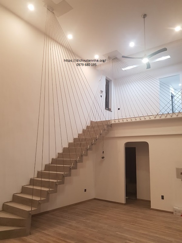 Chi phí thi công cầu thang bằng dây cáp được tính theo số mét dài dây cáp và các phụ kiện đi kèm, sử dụng số lượng hết bao nhiêu tính tiền bấy nhiêu.