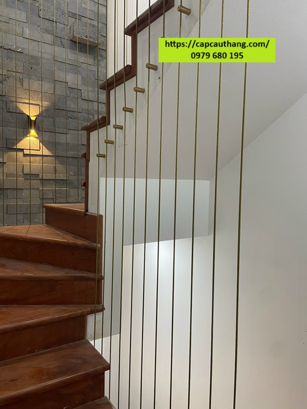 | Dây cáp cầu thang | Là thành phần chính tạo nên hệ thống cáp cầu thang. Dây cáp được làm từ vật liệu thép không gỉ hoặc bằng inox sus 304 cao cấp gồm 3 loại: cáp inox bọc nhựa, cáp inox trần và cáp thép bọc nhựa với kích thước D6mm hoặc D8mm.
